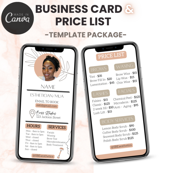 Esthetician Digital Business Card & Price List