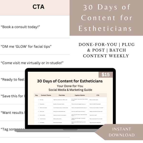 30 Days of Content for Estheticians – Social Media & Marketing Guide