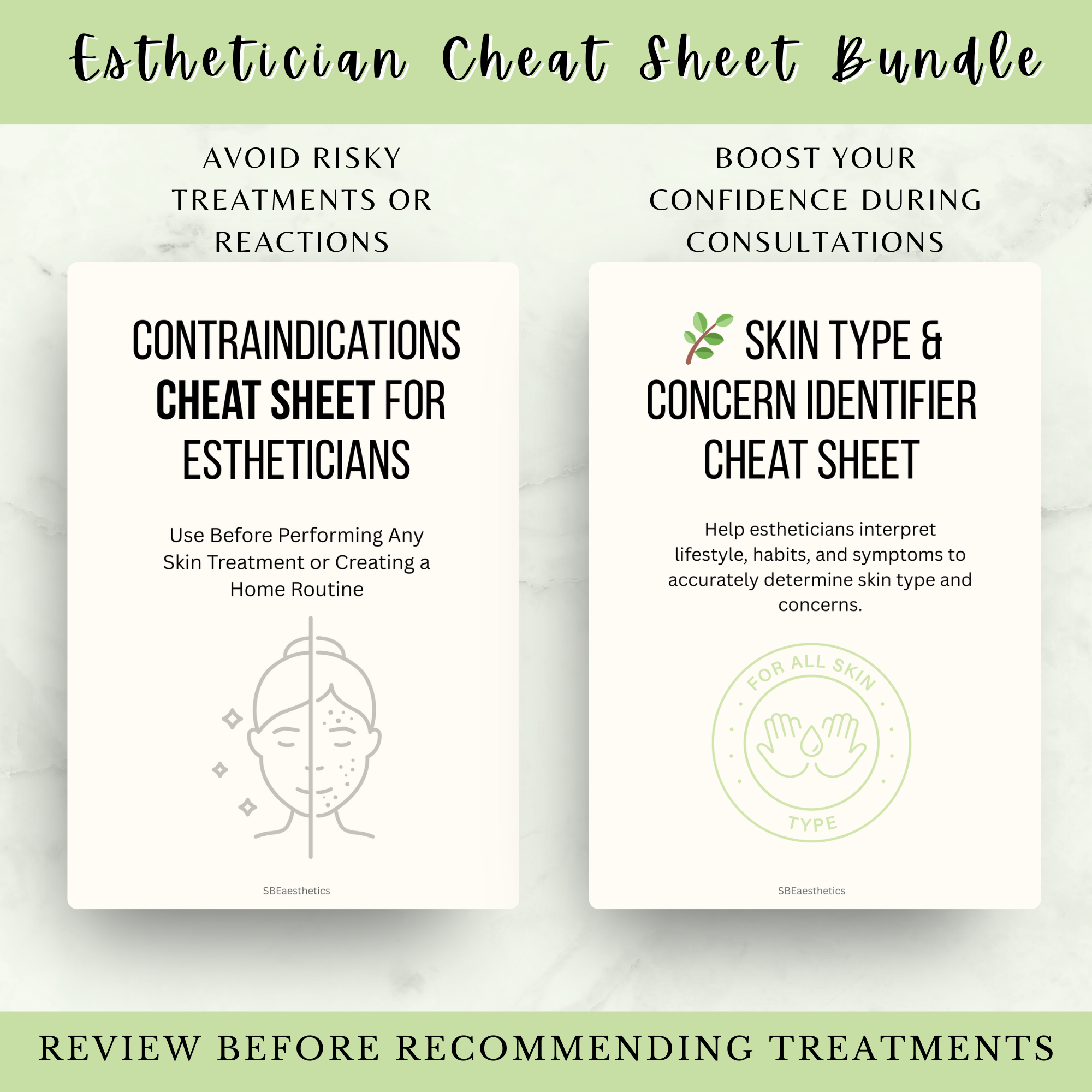 Take your skin consultations to the next level with these two plug-and-play reference sheets designed for solo and virtual estheticians. Whether you're reviewing a new client's history or planning a skincare routine, this bundle gives you the confidence to make safer, smarter choices.
