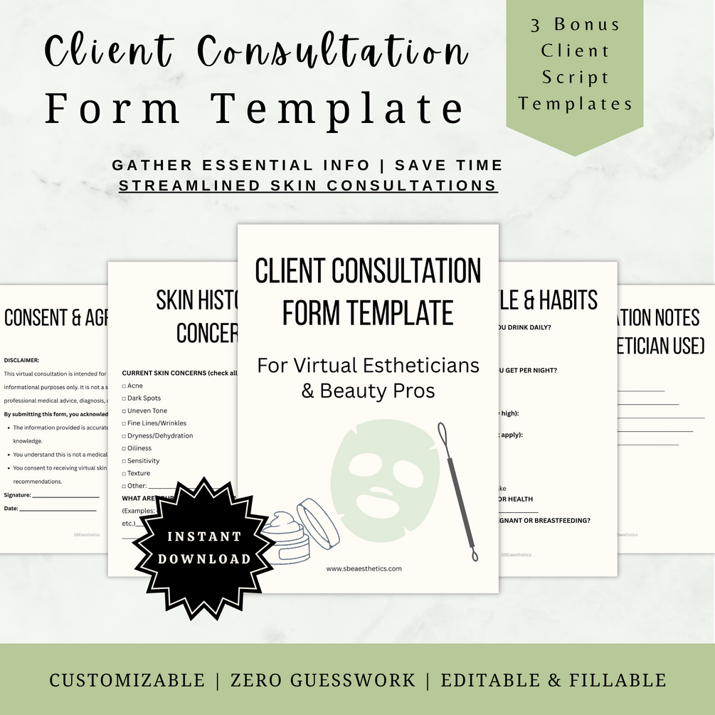 Client Consultation Form Template for Virtual Estheticians (Editable + Fillable)